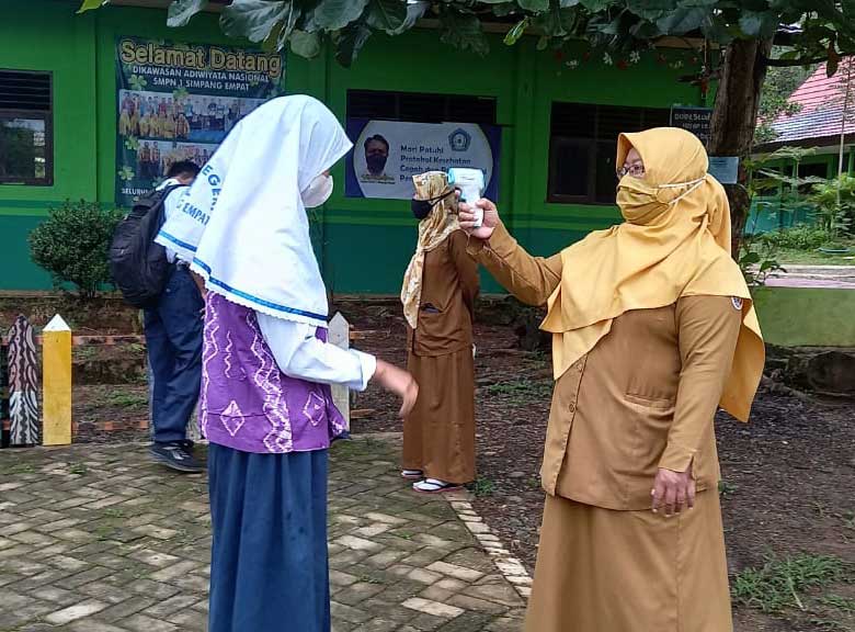 Dimulainya PTM Terbatas, Pemeriksaan Protokol Kesehatan (Prokes) di SMP Negeri 1 Simpang Empat